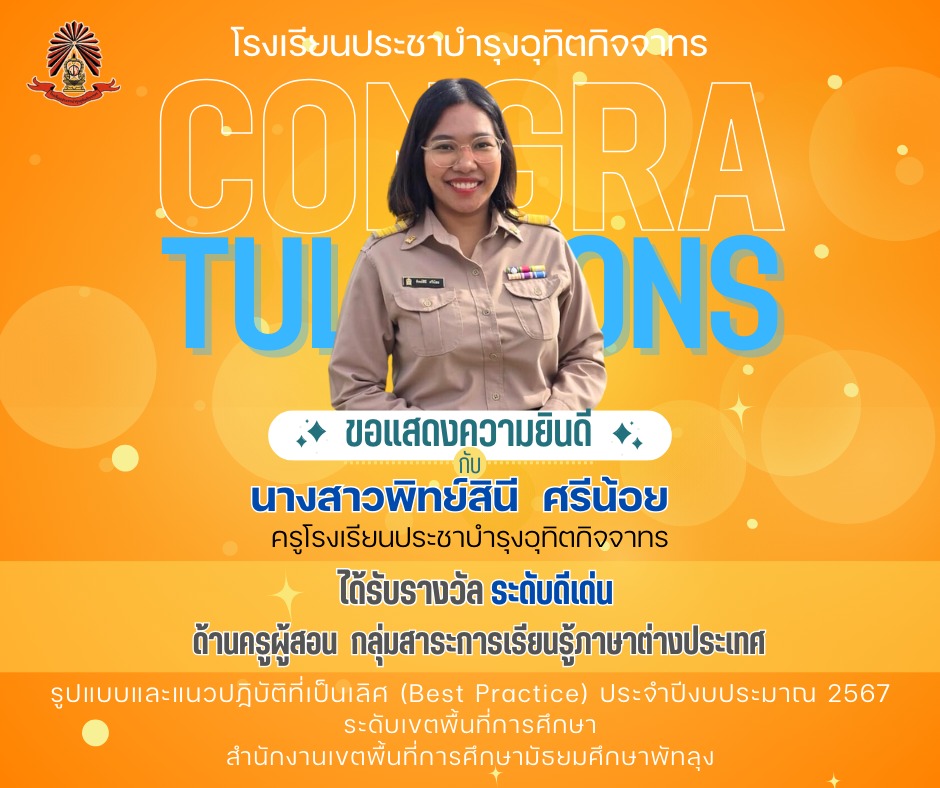 โรงเรียนประชาบำรุงอุทิตกิจจาทร ขอแสดงความยินกับคุณครูที่ได้รับรางวัล รูปแบบและแนวทางวิธีปฏิบัติที่เป็นเลิศ(Best Practice) 14 กันยายน 25679 พฤศจิกายน 2024 admin ผลงานนักเรียน/ครูFacebookFacebookXXLINELine admin